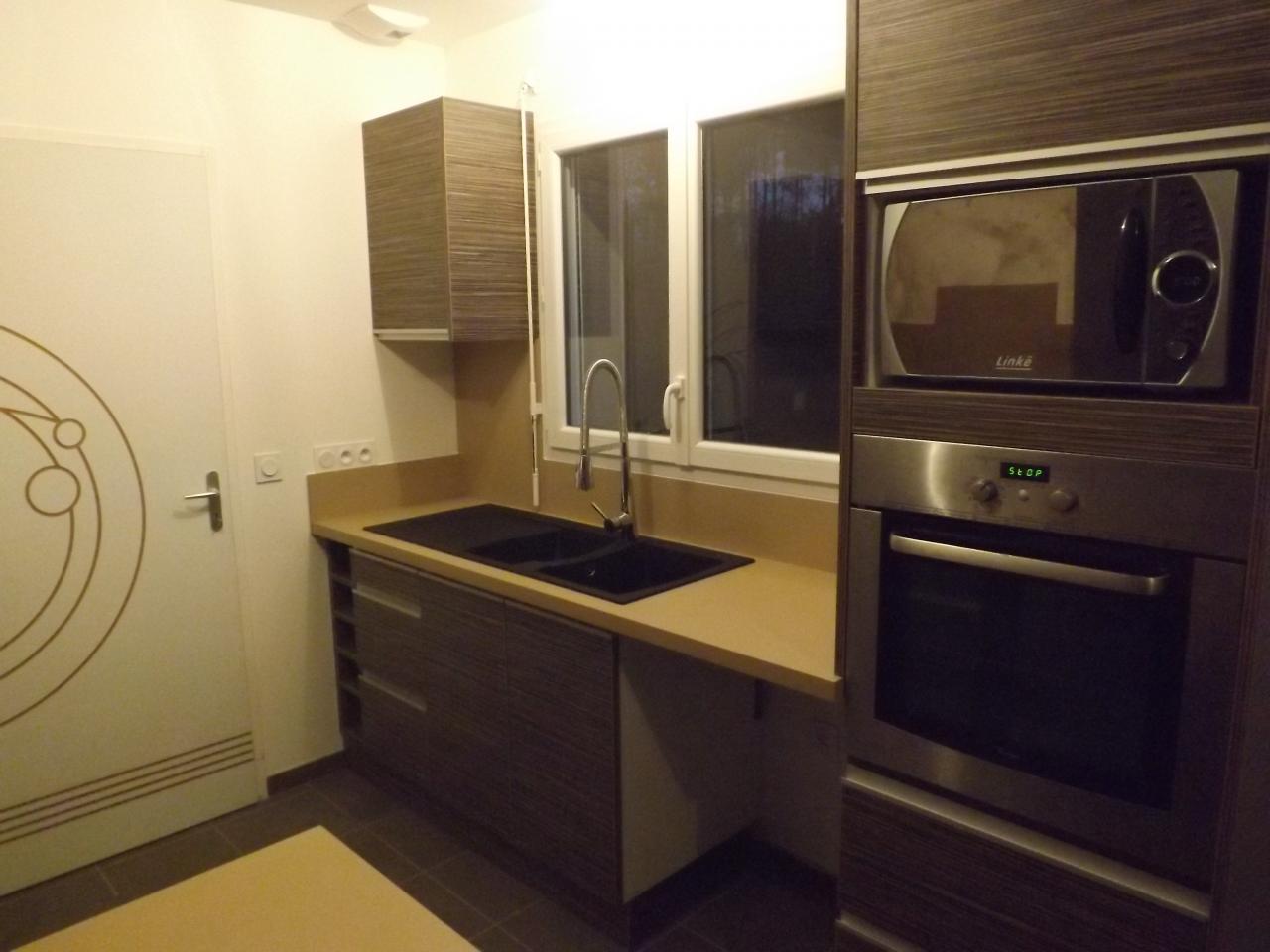 Fabrication d'une cuisine avec façade zebrano et plan stratifié Camel