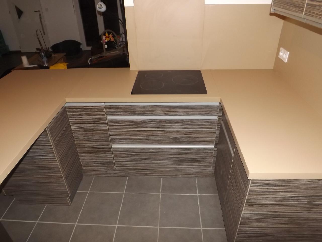 Fabrication d'une cuisine avec façade zebrano et plan stratifié Camel