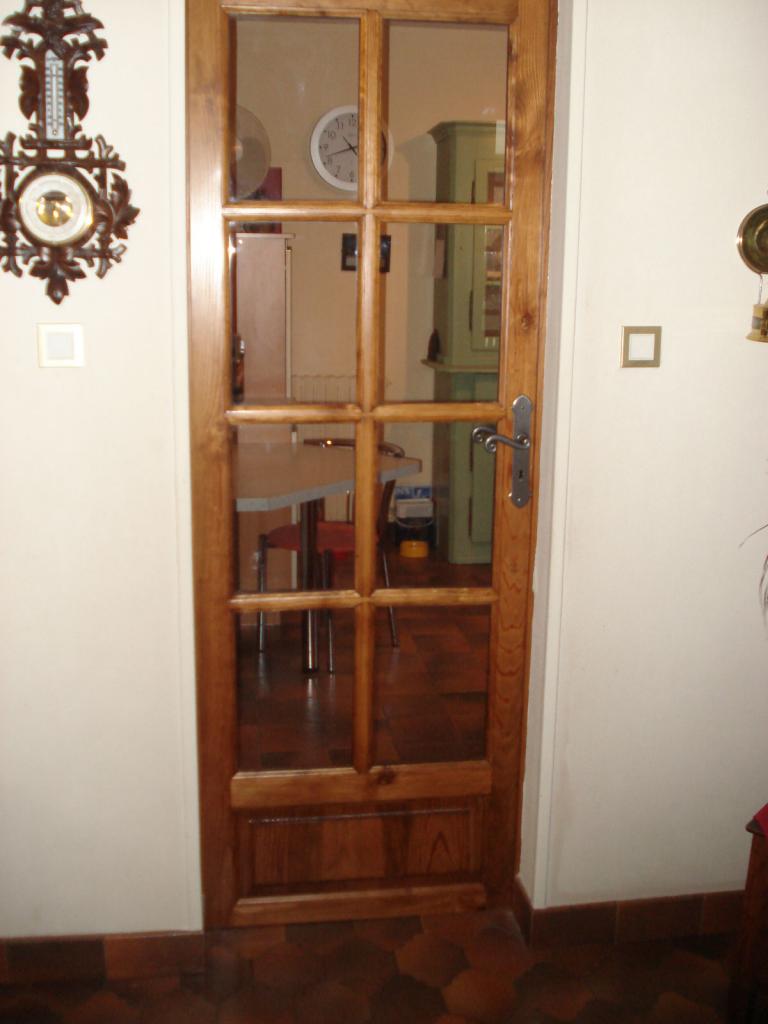 porte en pin vitrée avec petits bois mortaisés sur Pouillon